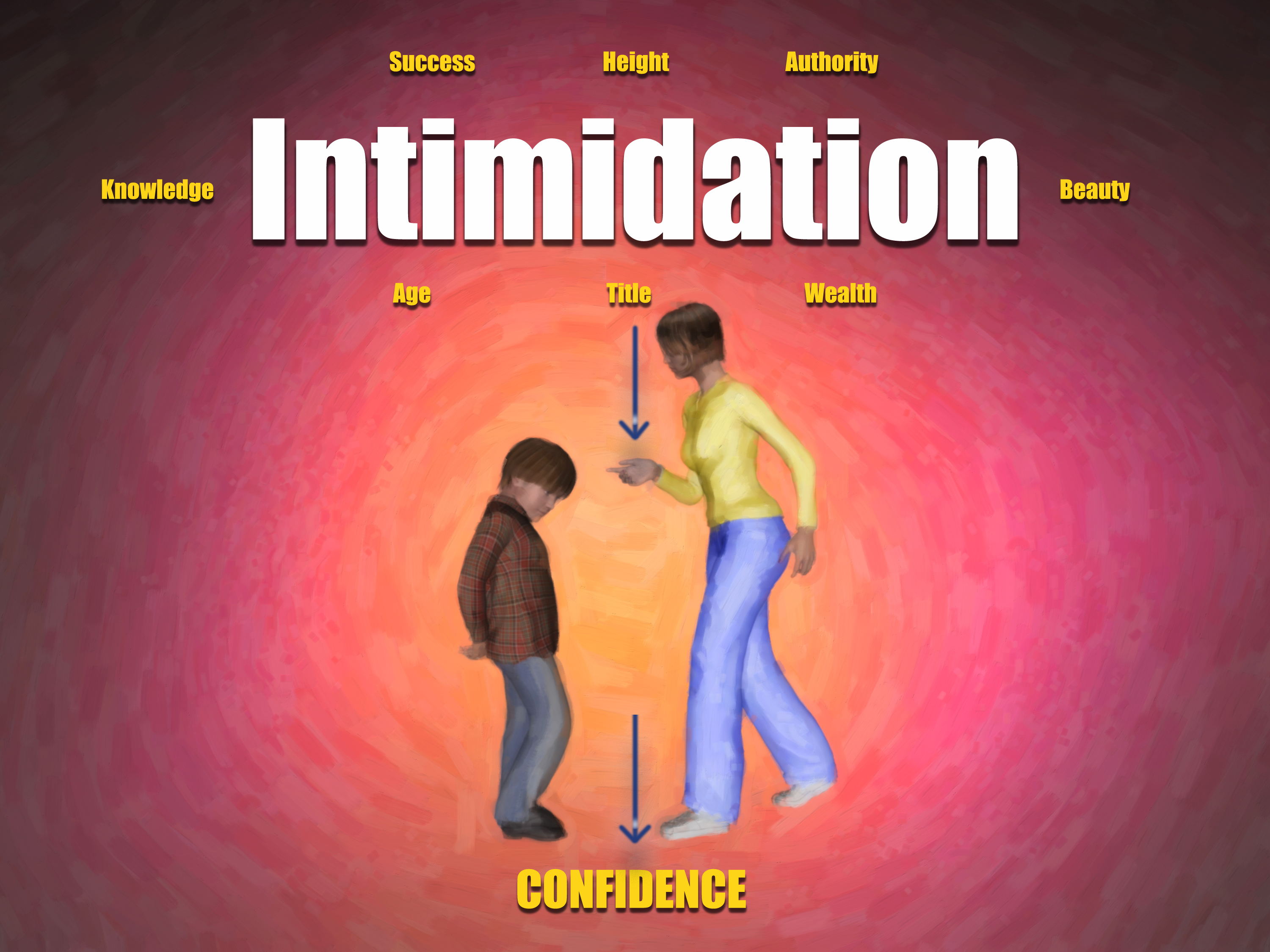 We all know the feeling. As you look at this poster, you’ll see that intimidation can have many roots. You might be intimidated by people of wealth, authority, beauty, height, success, age, knowledge, or something not even on the poster.
