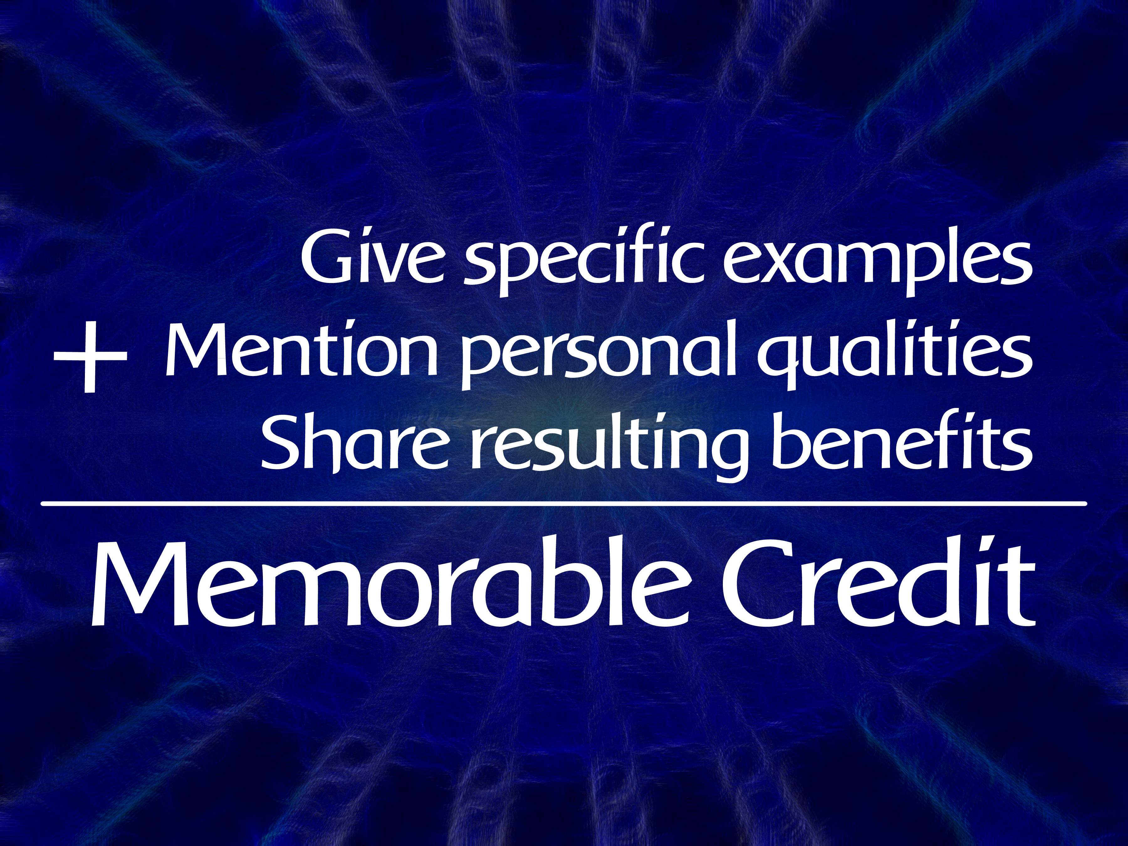 By coupling those three components together, I’m going to be able to give credit to someone that will really make an impact, that will really be memorable, that will really stick to them.