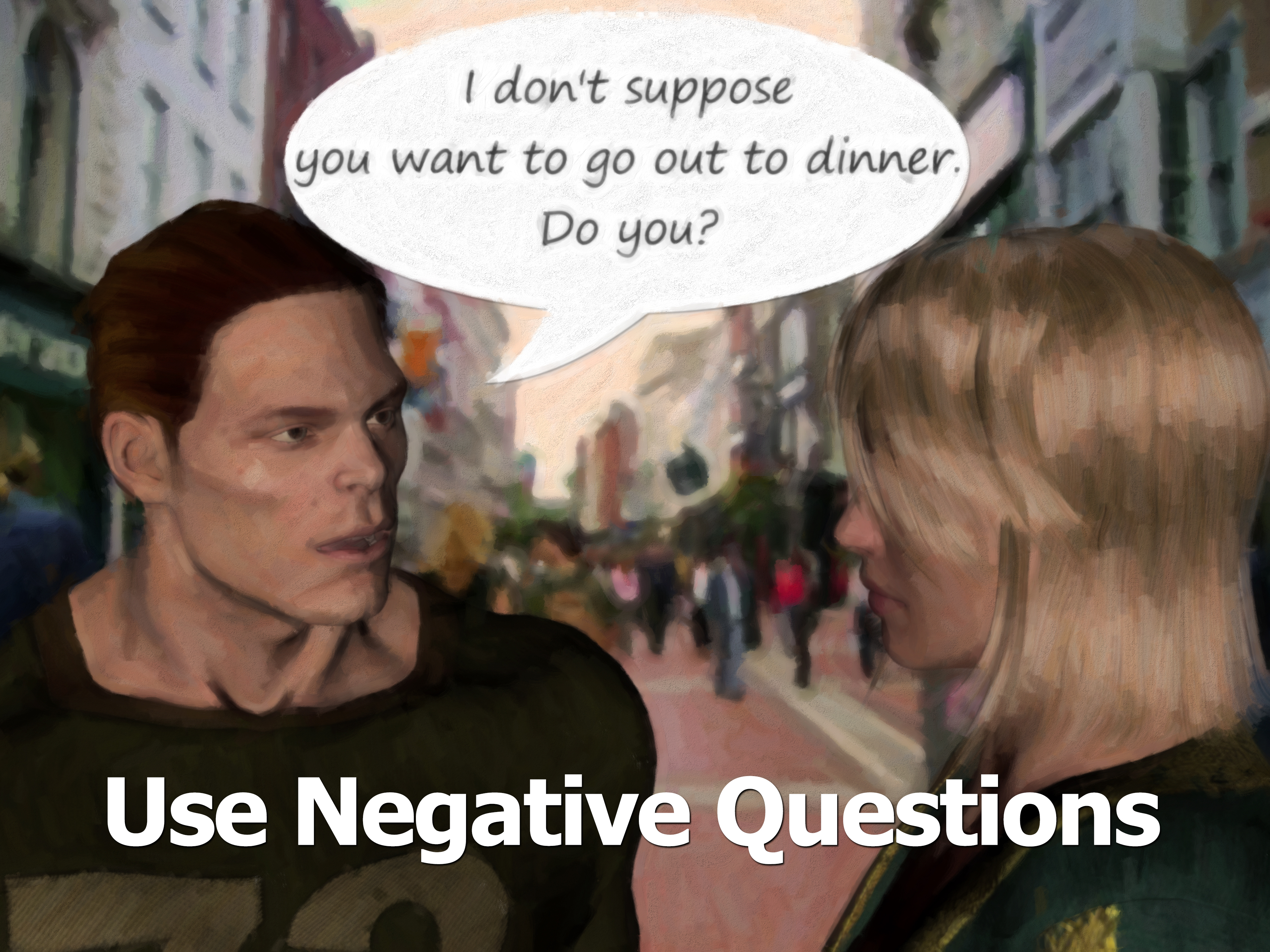 Through experience it doesn’t take a leader long to learn that his/her followers love to buy, but they hate being sold to. If they sense that the leader is trying pull a “sales job” on them, they will resist to the end.Here is where the phrase “I don’t suppose. . . ” becomes magic words in the vocabulary of a skilled leader. Those words keep the leader from painting himself/herself into a corner (see the poster In A Corner for more on this benefit.However, even more importantly it softens the leader’s approach – removing it from the realm of selling an idea to the realm of inquiring about an idea in the negative. It is stated as though the listener is not going to respond positively.