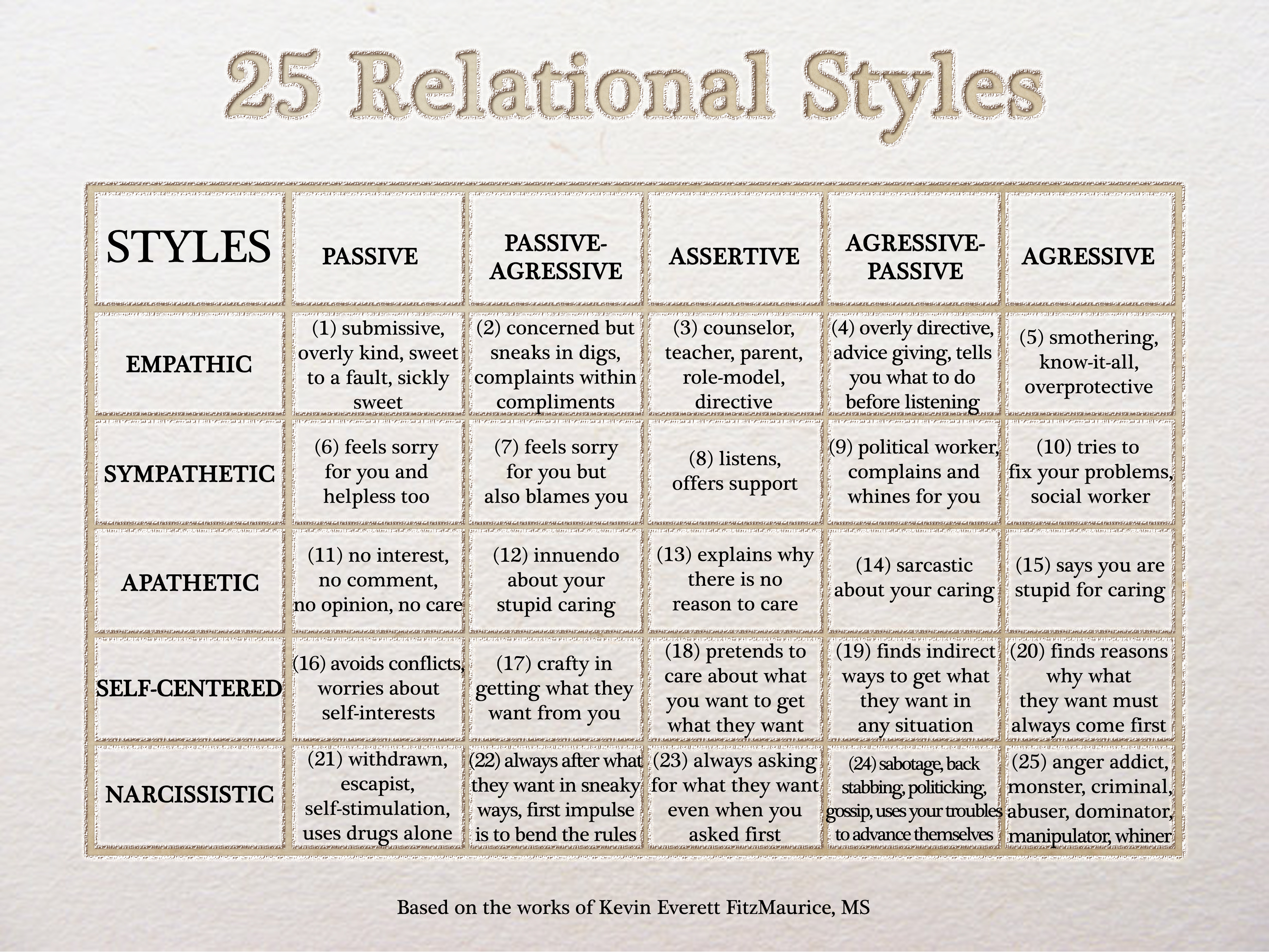 Down the left hand side you’ll see the emotional reactions within a communication from that of empathy in which the listener feels and identifies with what the speaker is saying to narcissistic in which the person has no emotional bonding with the person whatsoever and is truly and only self-focused.