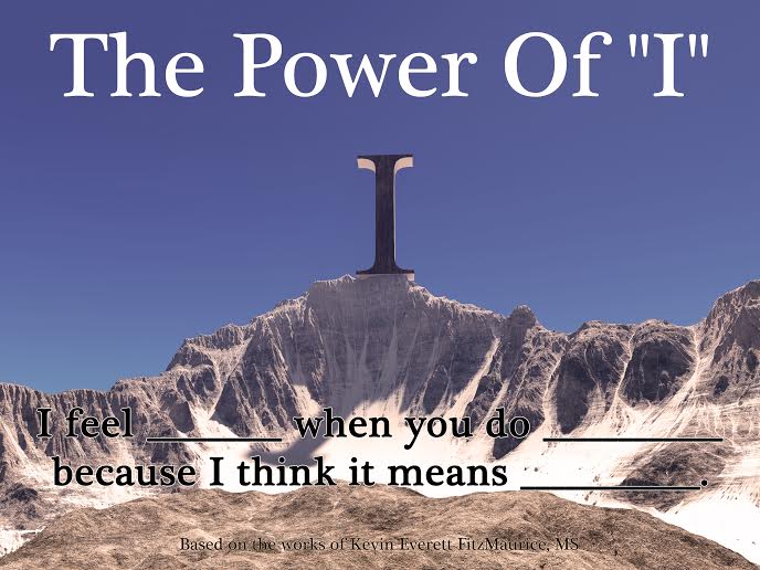This poster takes it a step further by addressing a proven formula for expressing those thoughts and feelings when they have the potential of creating defensiveness in the other person. A thank you goes out to Kevin FitzMaurice for first sharing this with me: