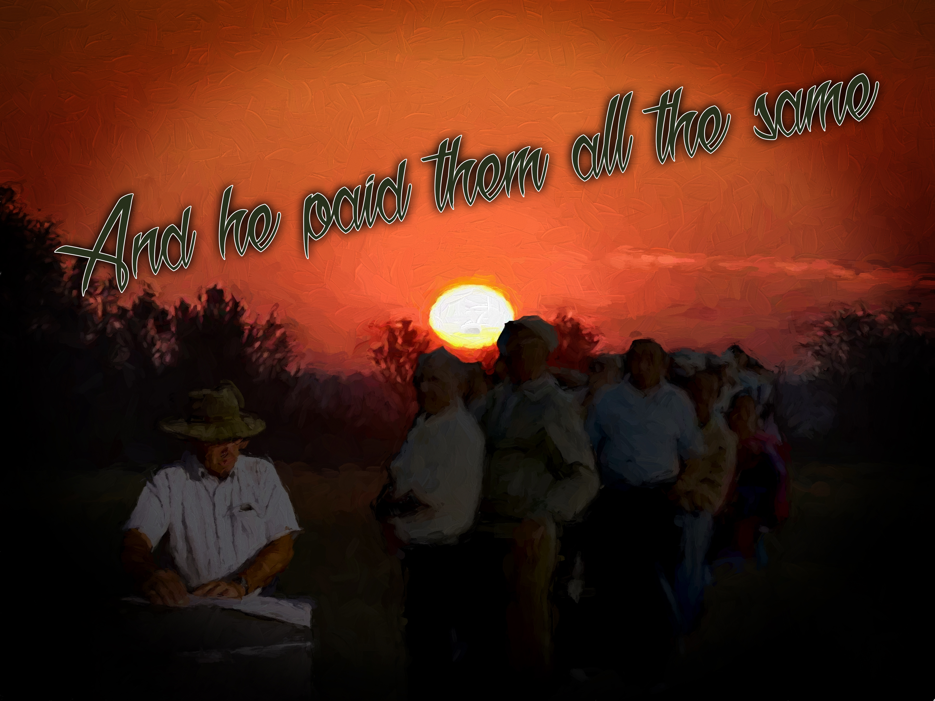 At the end of the day when it came time to settle up, the people who were hired first thing in the morning became irate when they heard that the others were being paid exactly the same as they were.