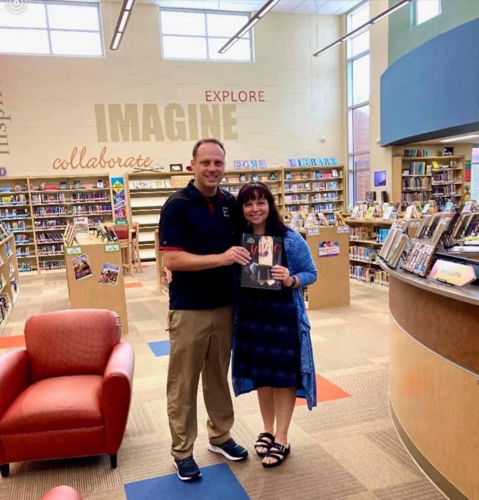 All we ask is that they get their picture taken during the donation “ceremony.” Each book contains a sticker inside the front cover with the club’s contact information.