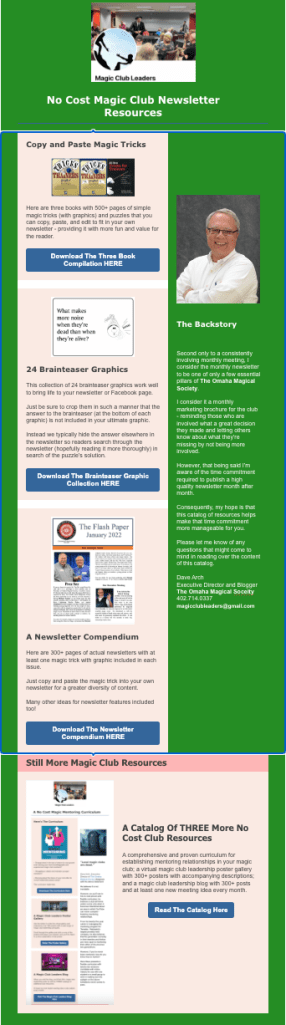 Second only to a consistently involving monthly meeting, I consider the monthly newsletter to be one of only a few essential pillars of The Omaha Magical Society.