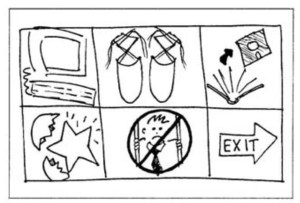 No text is normally allowed in Window Paning. Instead the steps to a process are converted to pictures* and put in sequential order across the top row from left to right and then across the second row.