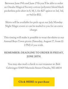 Have you ever ordered some custom apparel? We believe it gives our club members a sense of team particularly when we wear it to a public event like our annual Boys Town Picnic (see poster below).